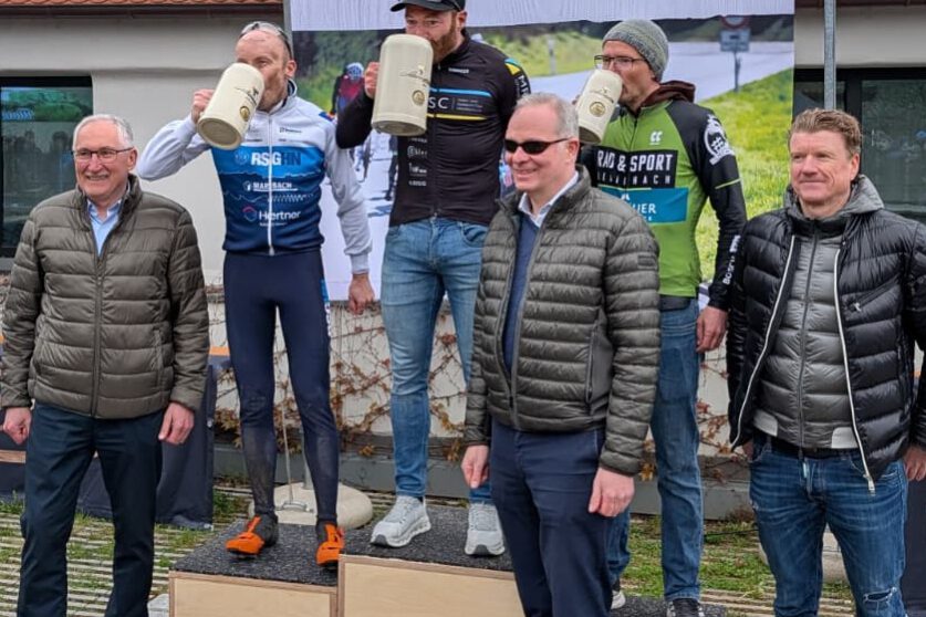 Beim Saisonauftakt zur bayerischen Straßensaison in Zusmarshausen nahmen am vergangenen Sonntag Oli und Christoph bei den Masters 2 das Rundstreckenrennen in Zusmarshausen in Angriff. Die weitgehend flache Runde wird nur durch einen Stich in Dinkelscherben unterbrochen und musste 3x befahren werden. In der ersten Runde blieb das Feld zusammen und erst zu Beginn der 2. Runde konnte sich eine 3 Mann Spitzengruppe absetzen. Da die Gruppe gut harmonierte suchte sich Christoph 2 Mitstreiter und beschloss mit diesen ebenfalls nach vorne aufzuschließen. Dem Trio gelang der Anschluss an die Spitze und im weiteren Verlauf teilte sich die 6-köpfige Spitzengruppe die Führungsarbeit so effektiv, dass das restliche Fahrerfeld sie nicht mehr einholen konnte. Im Zielsprint gab Christoph alles, die Gruppe teilte sich und am Ende musste er sich nur Sascha Bolz (2) und Philipp Petzold (1) knapp geschlagen geben. Oli rundete das gute Ergebnis mit Platz 20 ab.