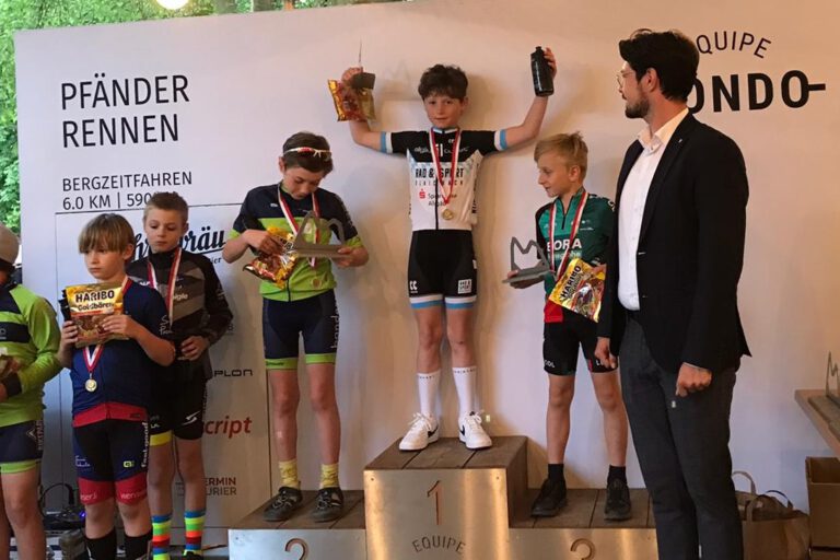 Beim Pfänderrennen im österreichischen Bregenz durften die Nachwuchsfahrer 2023 auch mal an den Start gehen. Wenn auch nicht die gesamte Pfänderstrecke, mussten die Nachwuchsrennfahrer 3 km und 290 Höhenmeter absolvieren…