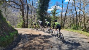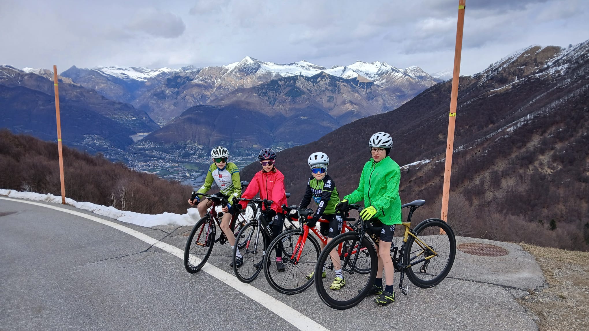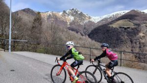 Um sich auf die Saison 2026 vorzubereiten, fuhren die jungen RSVler mit 3 Betreuer in der Karwoche an den Lago Maggiore. Perfektes Timing, denn während auf der Alpennordseite nochmals der Winter vorbei schaute, konnten die jungen Radler/innen auf der Alpensüdseite die Sonne beim Radeln genießen. So war die Alpe Neggia in der Schweiz das erste Ziel des 4-tägigen Trainingslagers. Alle schafften den fast 1400m hohen Pass vom See aus zu erklimmen und genossen die lange Abfahrt zum tiefblauen See. Am zweiten Tag fuhren die 2 Leistungsgruppen am Lago di Varese entlang und gelangten dann am Ende über den Passo San Antonio wieder zum Lago Maggiore. Um auch etwas Abwechselung rein zu bringen, suchten sich die Trainer am dritten Tag die Westseite des Sees zum Training aus. Hierzu begann der Tag nicht im Sattel, sondern auf dem Schiff mit der Überfahrt von Laveno nach Intra. Dort gab es nach der Tour ein gutes italienisches Eis, bevor mit dem Schiff wieder die Ostseite des Sees mit der Unterkunft aufgesucht wurde. Zu guter Letzt – schon mit müden Beinen aus den 3 großen Touren- versuchten sich die Nachwuchsfahrer/innen an der alten Passstraße des San Bernhardino. Fast verkehrsfrei konnten sogar 4 die Passhöhe auf 1600m erklimmen und genossen die lange Abfahrt nach Mesocco wo es sich der Rest der Gruppe gemütlich gemacht hat. Von dort ging es mit den beiden E-Autos und Anhänger wieder zurück ins verschneite Allgäu.