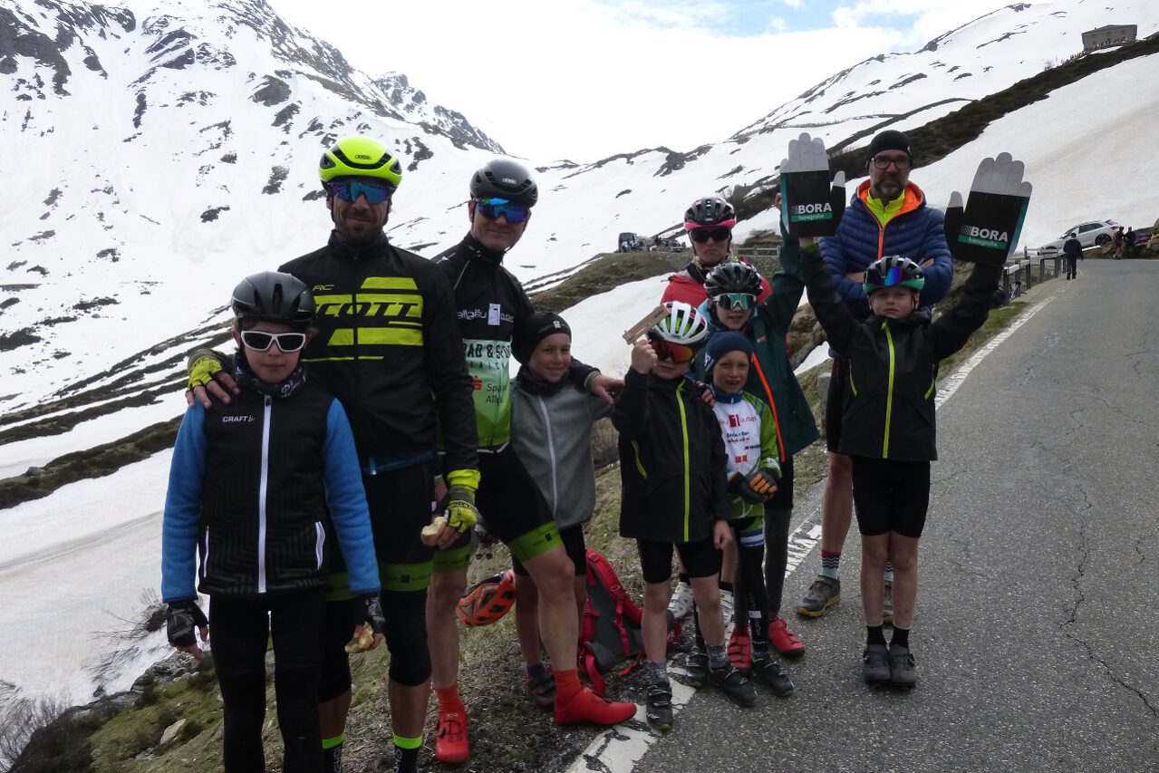 Bei der vorletzten Etappe des Giro d´Italia war auch der RSV als Fan am Straßenrand des 2138m hohen Splügenpasses in der Schweiz. Trotz extremer Wetterbedingungen, wagten es die 6 Schüler Fahrer des RSV von Sufers den Splügenpass mit dem Rennrad zu erklimmen. Nachdem sie selbst die 600 Höhenmeter bezwungen hatten, warteten alle gespannt auf die Besten des Radsports. An diesem Tag sollte endgültig die Entscheidung fallen, wer in Mailand sich das Rosa Trikot des Gesamt Spitzenreiters überstreifen darf. Bei den 10 Kehren übereinander kurz vor der Passhöhe war es perfekt, die ankommenden Gruppen der Profis zu überblicken. In der zweiten Gruppe war auch der Favorit – Egan Bernal – der das Trikot an diesem Tag souverän verteidigte. Die RSV Jungs und der Trainer bzw. die Eltern feuerten die Profis mit „Pauken und Trompeten“ an um ihnen für die letzten harten Meter dieses 3 wöchigen Rennens nochmals Kraft zu geben. Doch auch für die Jungs wurde die Abfahrt eine Herausforderung. Bei 5°C und Regen, eine erste Grenzerfahrung, wie Radsport doch einen Biss abverlangt.