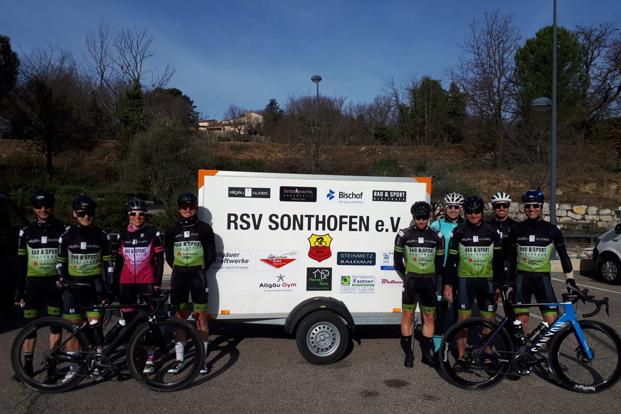 Nachdem 2023 es wieder möglich war, vernünftig ein Trainingslager zu planen, fuhren 9 Radrennfahrer und eine Fahrerin sowie 2 Kinder nach Südfrankreich ins Trainingslager. 2 Teilnehmer fielen leider wegen Corona aus. Am Fuße des Mont Ventoux quartieten sich die Oberallgäuer in Malaucene ein. Bereits bei der Ankunft konnten die Teilnehmer noch eine 2-3h Tour im Departement Rhone-Alpes unternehmen. Von Samstag auf Sonntag kam der einzige Regen und es wurde von Tag zu Tag wärmer. Am zweiten Tag wurde die Gorges de la Nesque durchfahren und am Montag ging es weit ins Hinterland nördlich des Mont Ventoux. Die höchsten Erhebungen waren hier der Col de Perrty sowie der Col de St. Juan mit bis zu 1300 m Seehöhe. Am Dienstag teilte sich die Gruppe. Die stärkeren Fahrer wollten unbedingt den Mont Ventoux hoch- und das nicht nur einmal, während eine weitere Gruppe Richtung Nyons und westwärts eine Schleife zogen. Sie wollten den Mont Ventoux nach dem Ruhetag angehen.