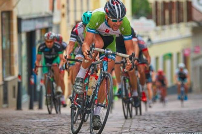 Der heutige dritte Tag war dann „schön“ bergig. Auf 122 km kamen fast 2000 Höhenmeter. Nach dem ersten Schnapper rollten Herbert, Timo und Gippe wieder zu Matthias auf. Am nächsten Anstieg mit 500 hm bewies Herbert wieder, dass er momentan richtig gut drauf ist, platzierte sich in der ersten Verfolgergruppe und wurde am Ende der Etappe 19. Timo hatte mit Atembeschwerden zu kämpfen, konnte jedoch mit einer Gruppe wieder auf Matthias aufschließen, da dieser nach einer Abfahrt alleine im Flachstück „festsaß“. Durch einen guten Sprint in den Feldkircher Gassen heimste sich Matthias noch einen respektablen 38. Platz ein. Gippe biss sich am Führenden seiner Altersklasse fest, mußte sich jedoch im Zielsprint knapp geschlagen geben und wurde somit erneut 2. in der AK 50. Auch Nadine verkaufte sich mit dem 13. Platz gut.
